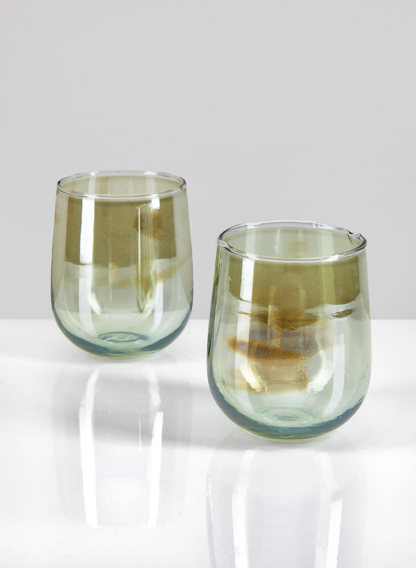 These small green luster candleholders perfectly capture candlelight, creating a warm, rich atmosphere. They work well with white votive candles. Alternatively, add a bold or delicate floral arrangement to these holders, such as an antique purple hydrangea or a red charm peony stem. For an added spark, wrap some flashing warm white LED naked wire lights around your floral displays.