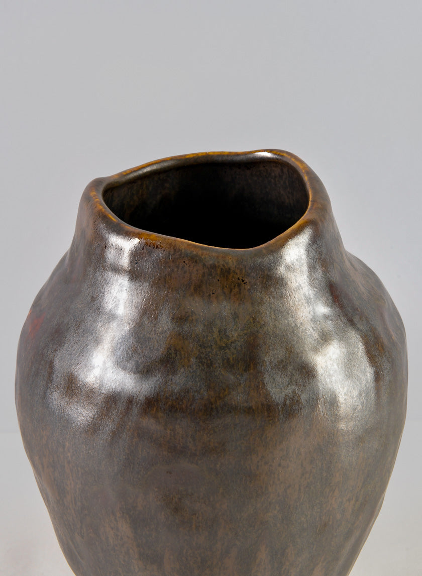 9in Tall Mashiko Aged Brown Artisan Urn