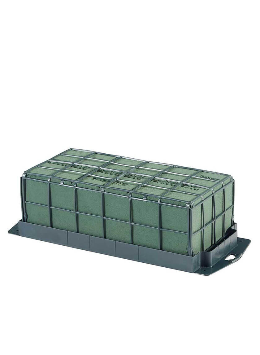 This is a full brick of Deluxe OASIS Floral Foam Maxlife on a solid plastic base and cage that provides extra stability for larger, more lavish arrangements. Eyelets at both ends allow for hanging florals and suspended arrangements. Think florals on a wedding arch, in front of a wedding sweetheart table, or for a suspended floral chandelier over a long table.