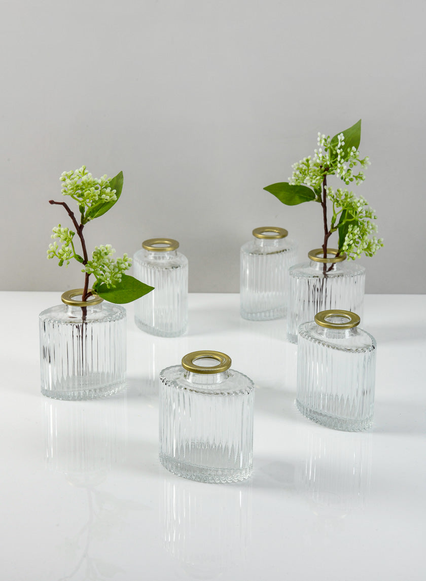 3in Tall Petit Gold Rim Oval Glass Bud Vase, Set of 6