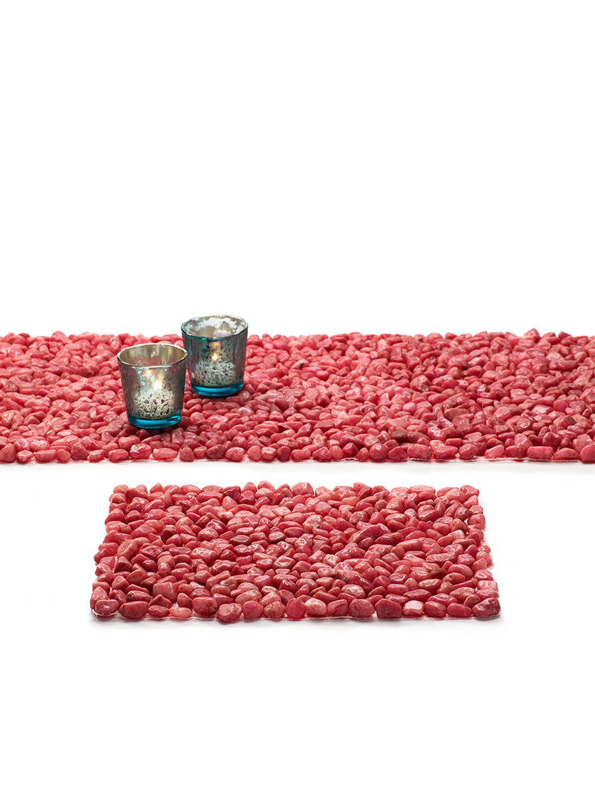 "Add a natural touch to your table at a wedding or event, with these pink stone runner and placemat. Or place it across your dining table at home to use it as a base for your candles. This runner and placemat have polished, pink-colored stones."