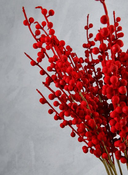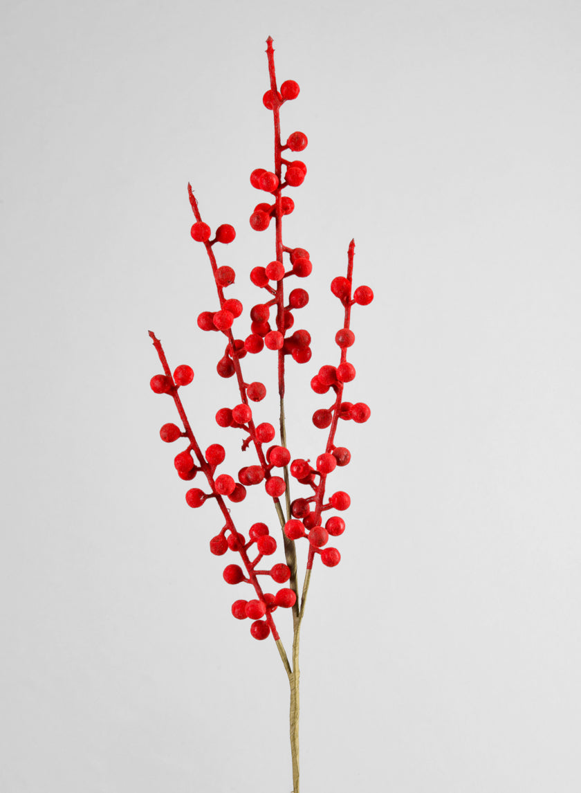 24in Long Red Flocked Berry Stem