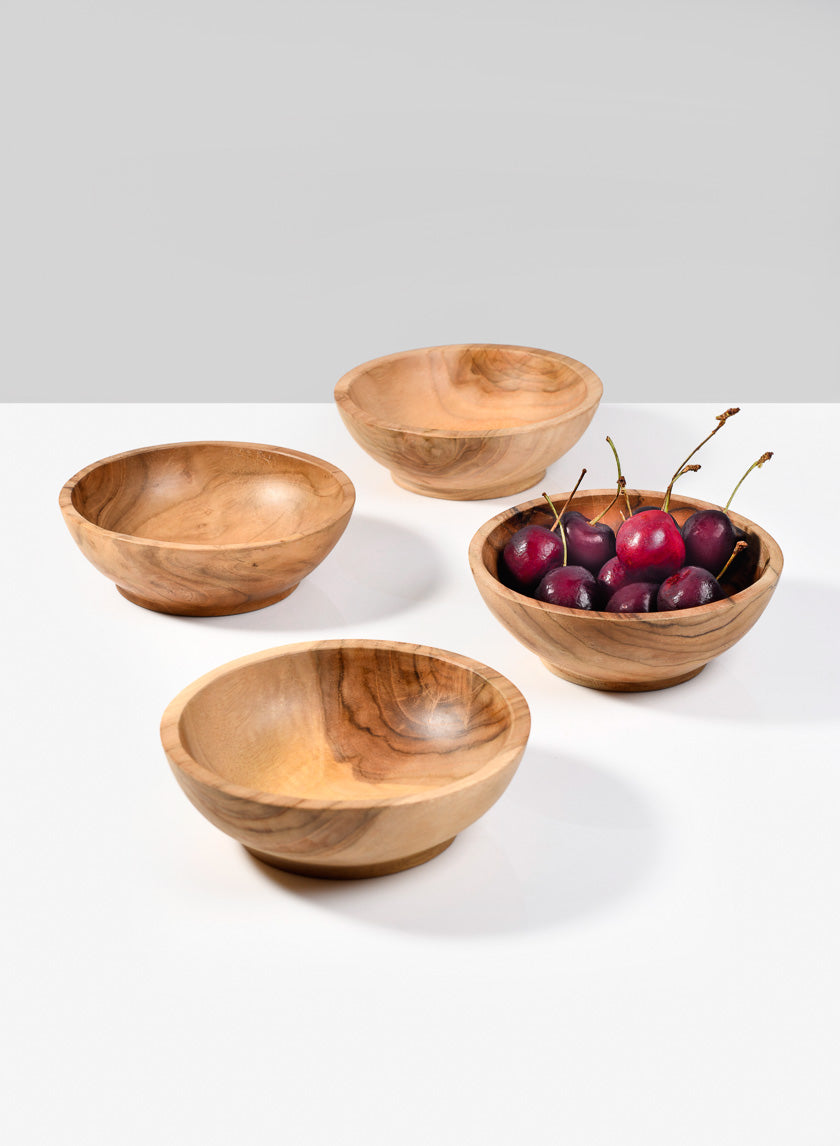 4.5in Wide Pedestal Teak Wood Bowl, Set of 4