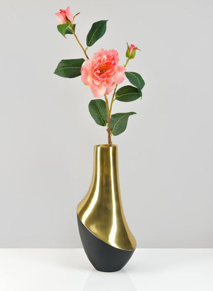 The Salamanca Two-Tone Vase’s sculptural form and eye-catching two-tone finish radiate a sense of easy modern elegance. A sleek, stylish silhouette that will be the focal point of any space thanks to its design and shape. The combination of deep matte black and polished gold creates a striking contrast. A chic and lavish present for the art enthusiast, interior designer, or newlyweds on your list.