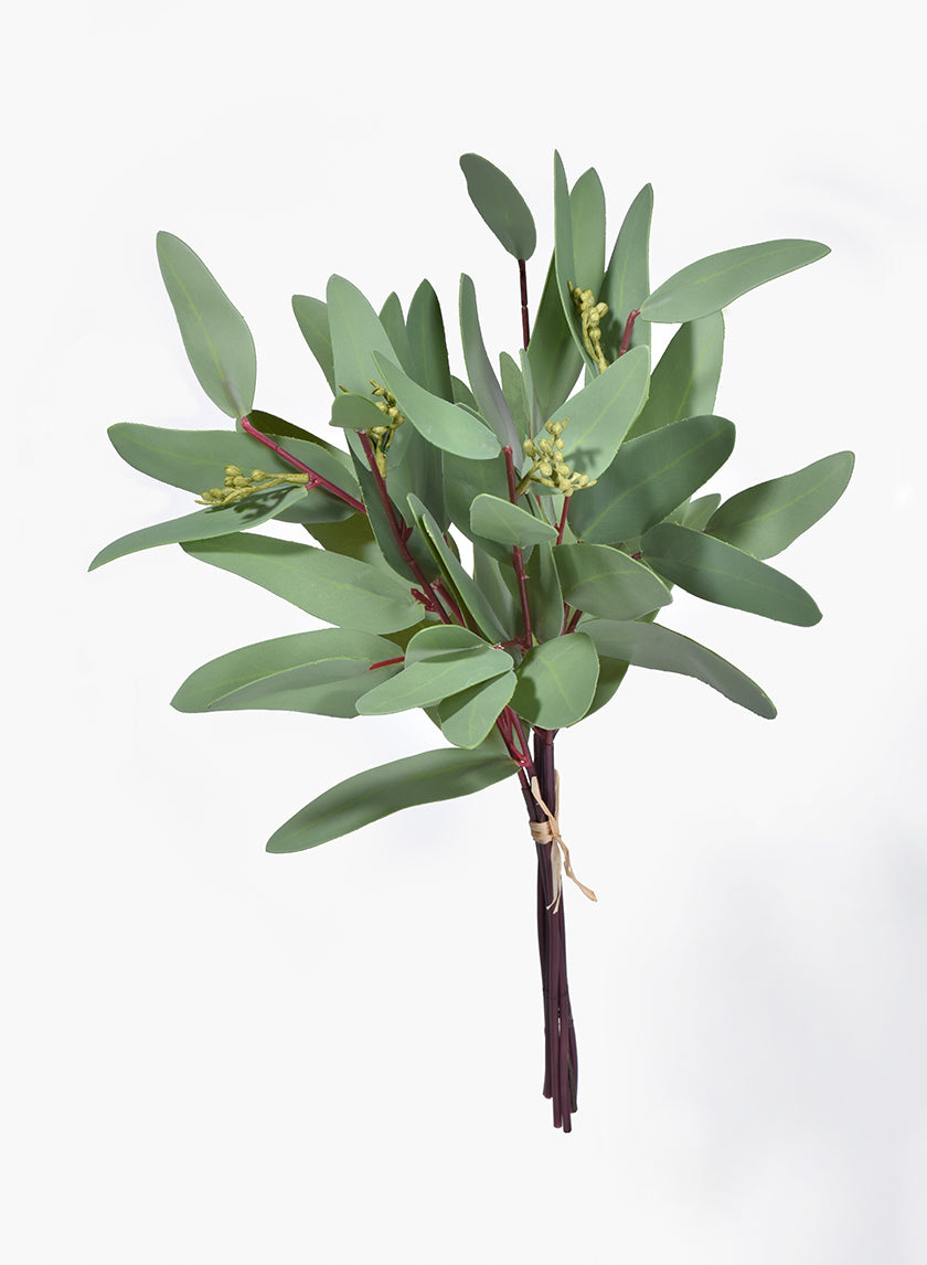 Eucalyptus is a gorgeous tree whose leaves and branches offer tons of stylish potential when they're used as décor. Our seeded eucalyptus bouquet is 14 inches tall. It features olive-green, almond-shaped leaves growing from a lovely red stem. However, what sets this eucalyptus bouquet apart is the delicate groupings of small, green seeds that give it a distinctive appearance.