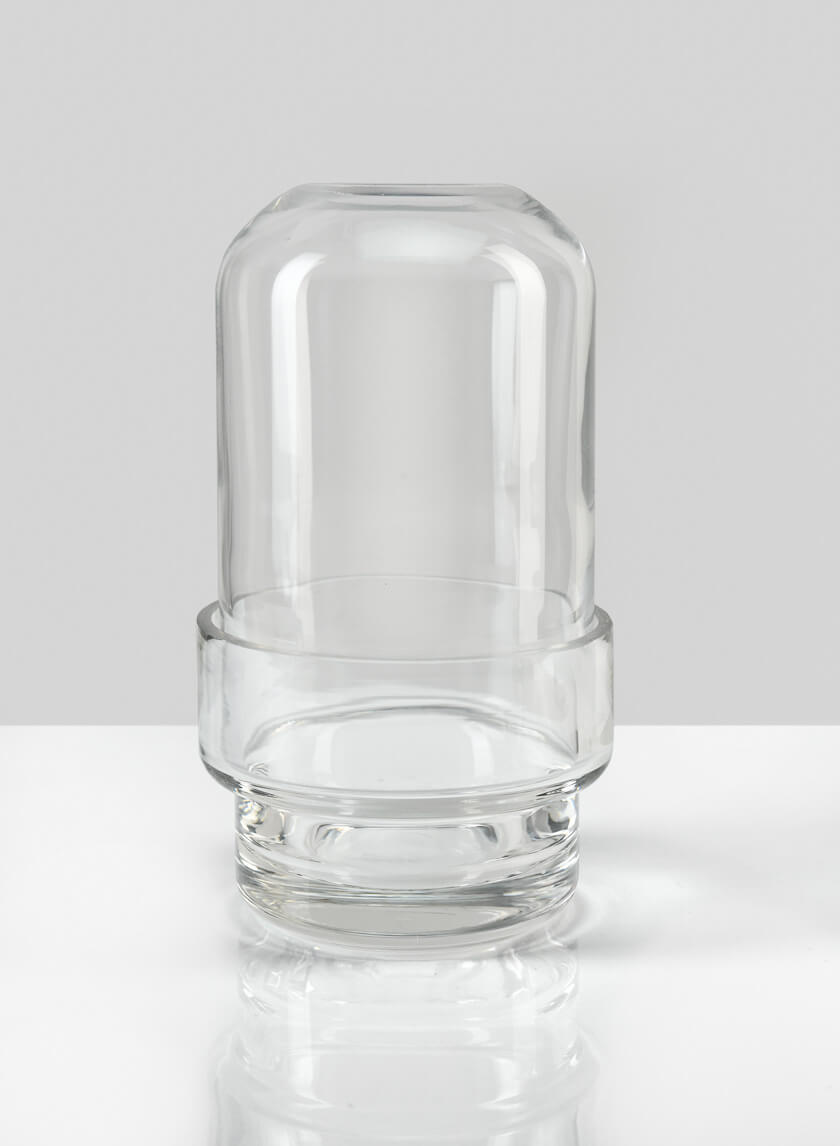 This capsule-like glass terrarium has two parts: a base that has a wider top half, and a bell jar shaped top that fits right into this wider part of the base. With a round shape and a small profile, its design works with classic and contemporary styles. We filled our Swazi terrarium with some faux burro's tail succulents with a bit of moss at the bottom, but a silk rose or ranunculus would also look lovely as a decorative accent or as multiples as part of a tablescape.