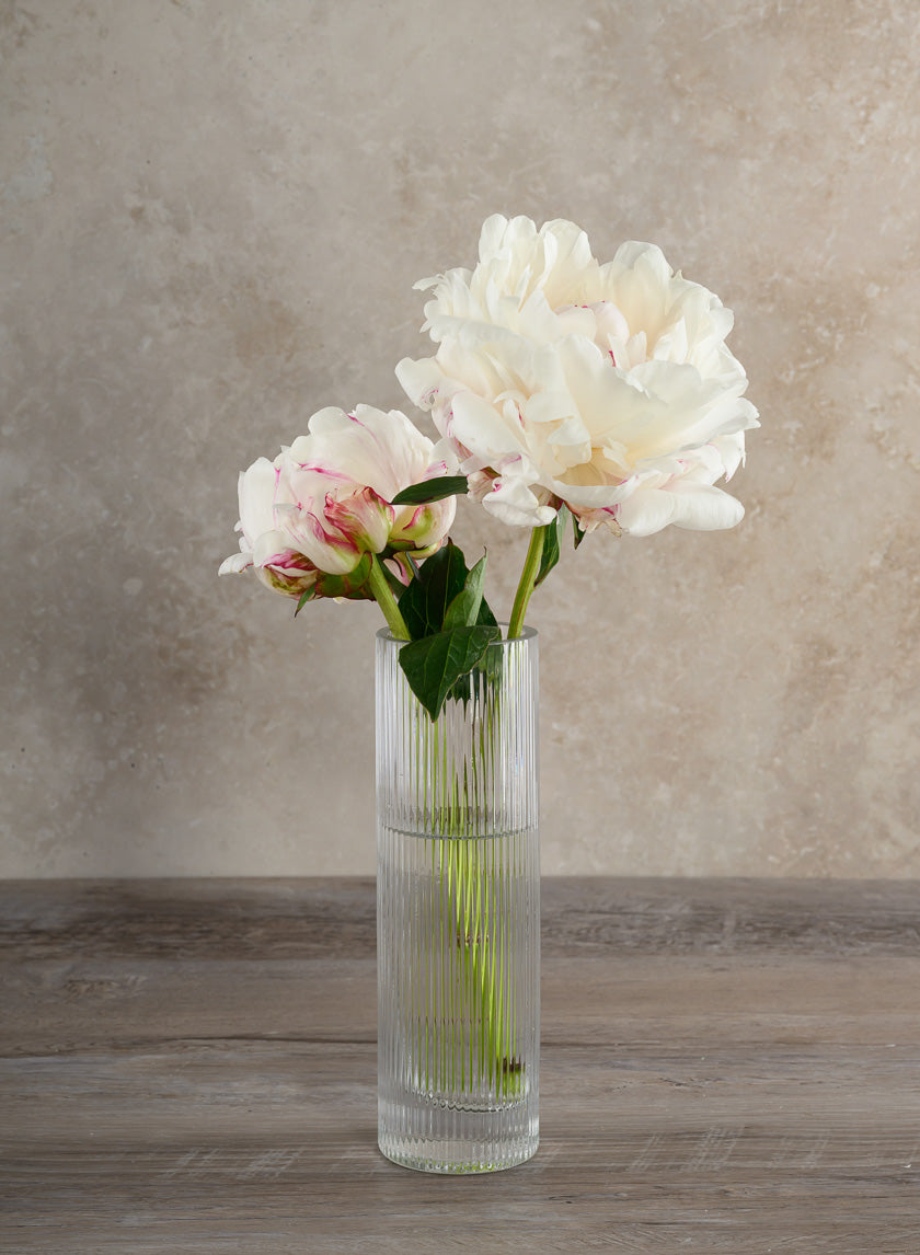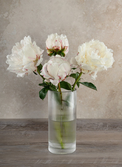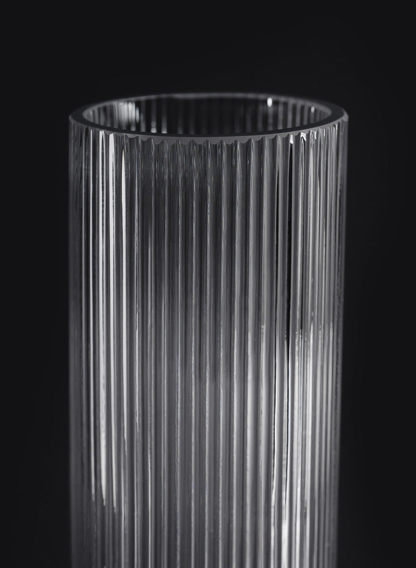 An exquisite and modern way to display your beloved flowers, the Vienna Pleated Glass Cylinder will provide a touch of class and grace to any occasion. Simple but a perfect vase for any floral arrangement, whether it's a bouquet or just a single stem.