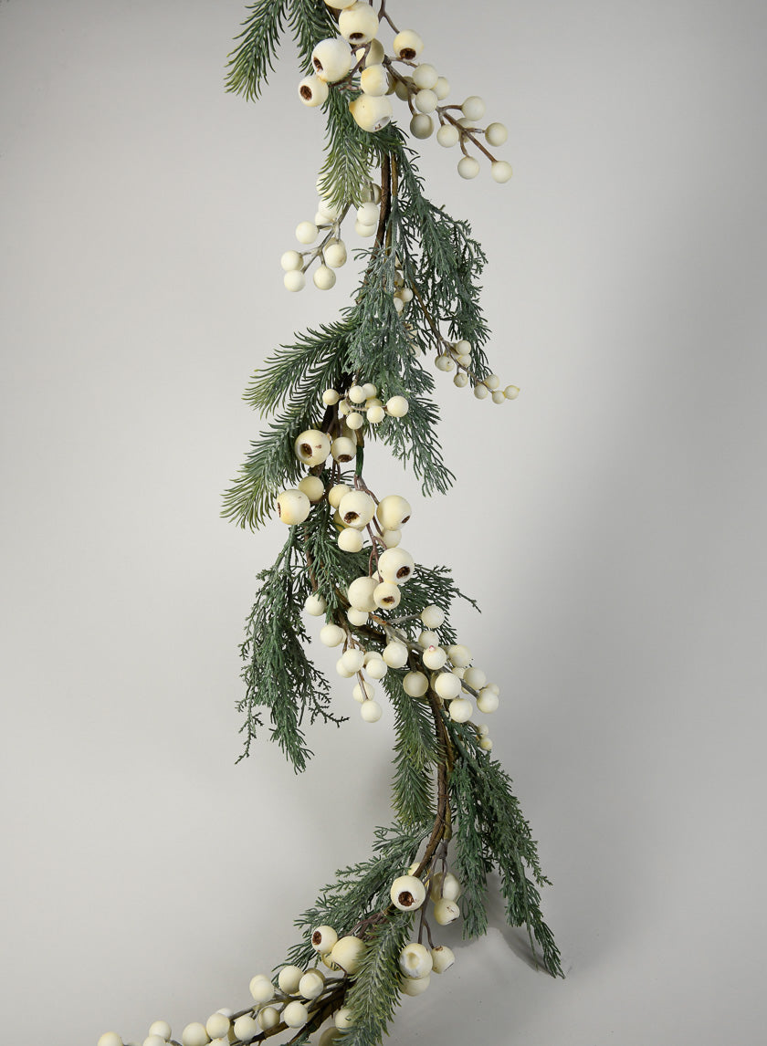 58in Long White Berry & Blue Fir Garland