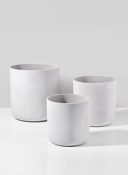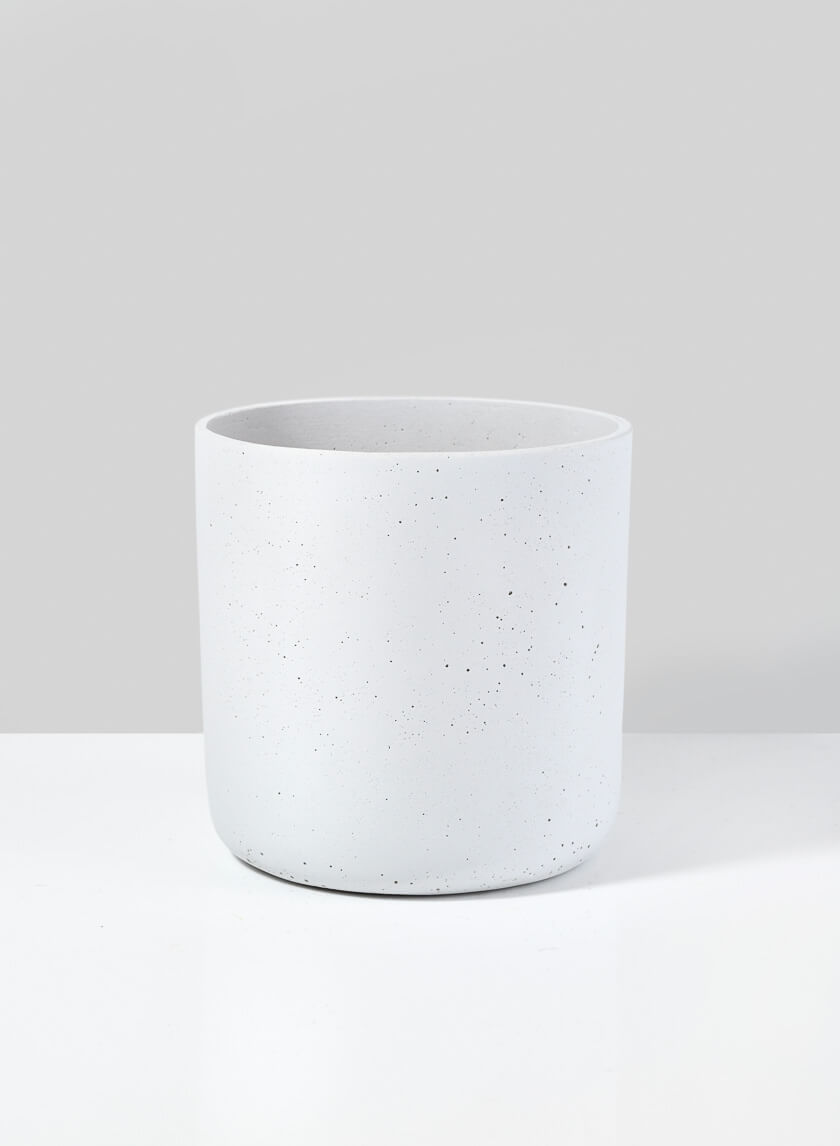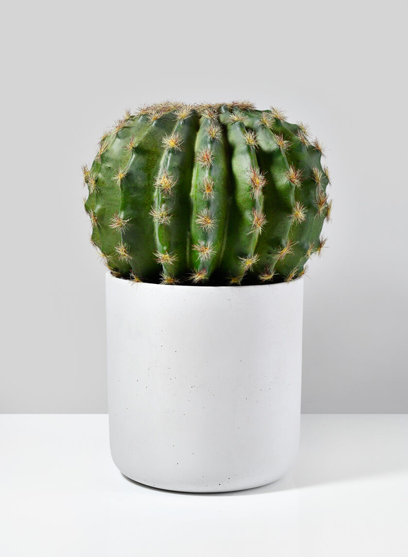 Our pots hold some of our artificial plants and greenery, including a barrel cactus, lavender, and aloe. The simple cylinder shape and their white color make these planters an easy container to add to any home decor style or event garden, and they look great together with a mix of different leafy plants, flowers, herbs, barrel cactus, lavender, and aloe.