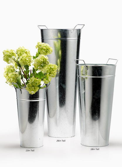 The Zinc French Vases will help your events have a little rustic elegance. Made of galvanized, durable zinc, these vases combine elegance and strength to create a timeless appeal that accentuates any area. Modern and vintage décor styles would find them perfect with their classic French-inspired design, square handles, and sleek metallic finish.